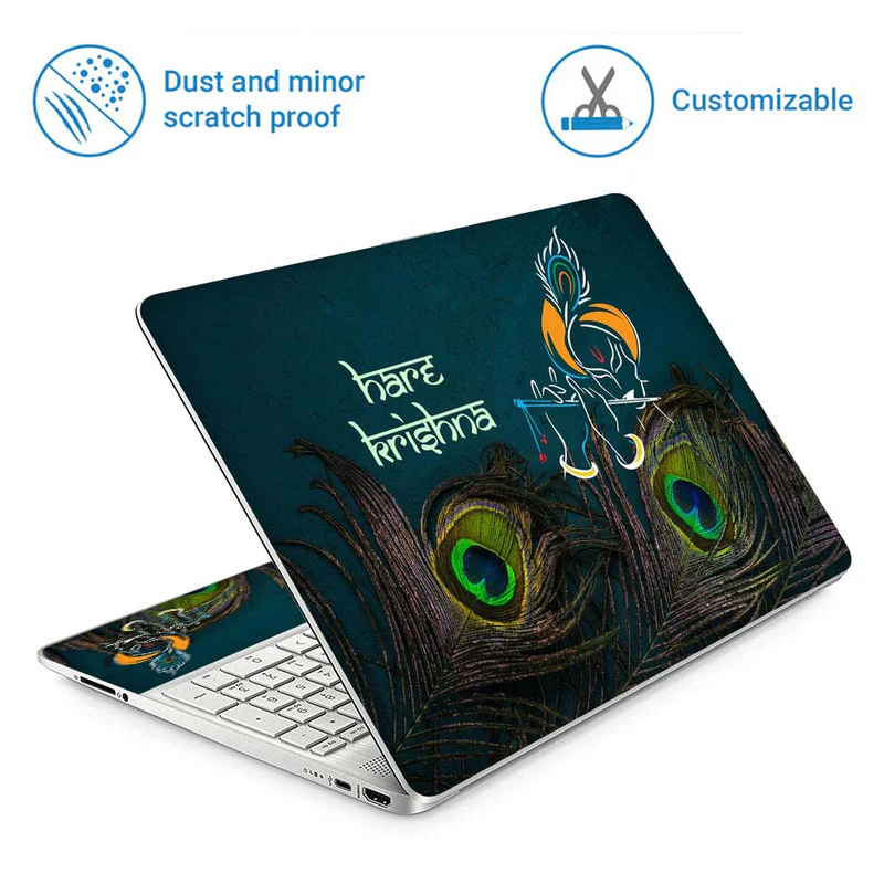 Full Panel Laptop Skin - Hare Krishna Bottom Feather