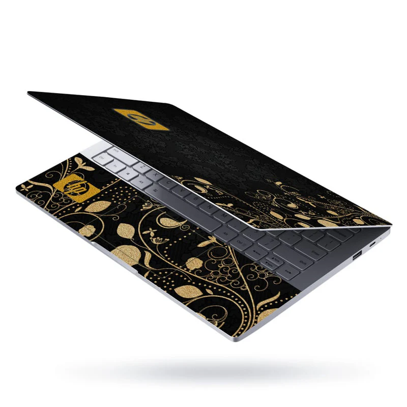 Laptop Skin - Golden Floral On Black Floral Hp
